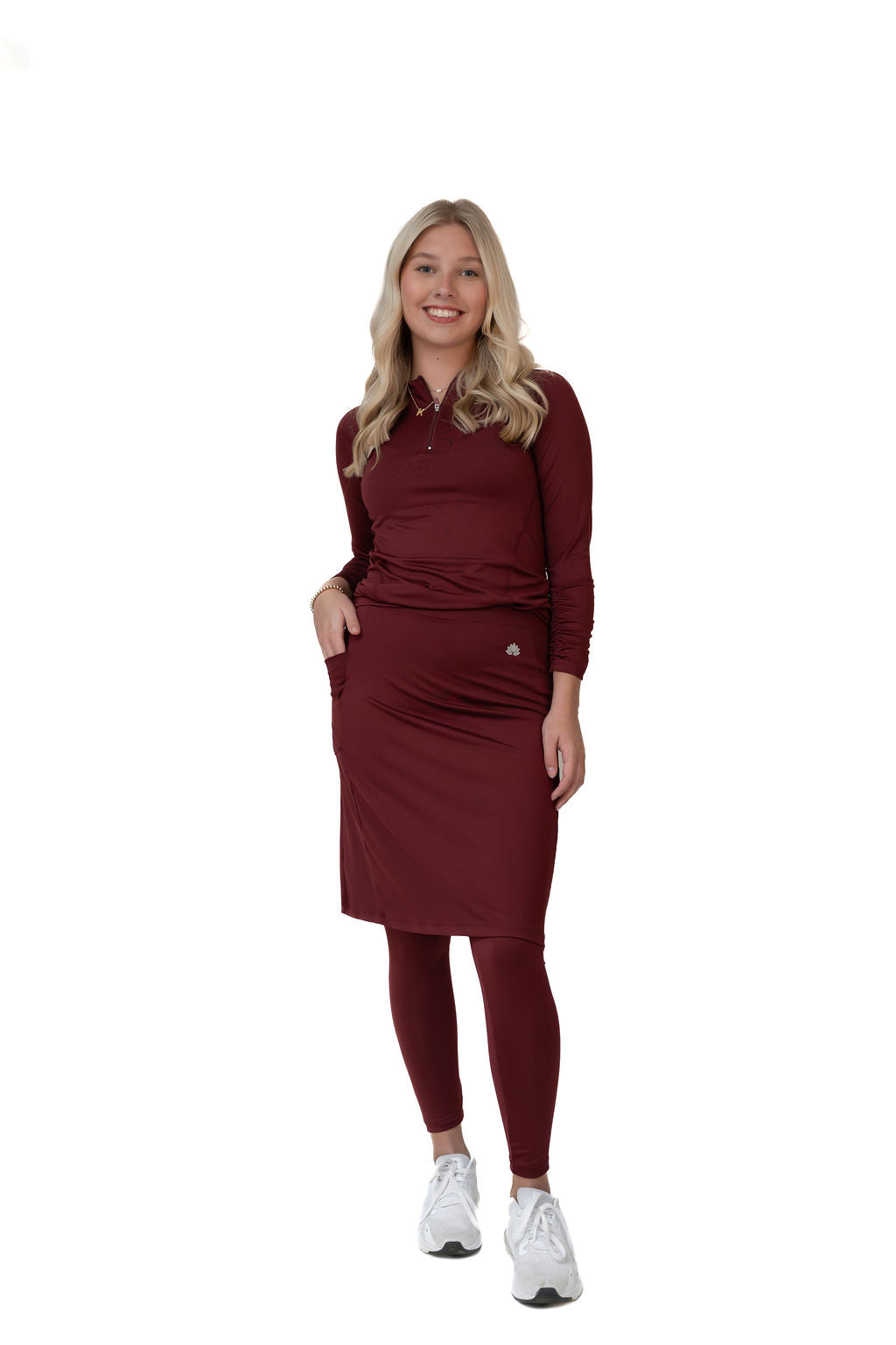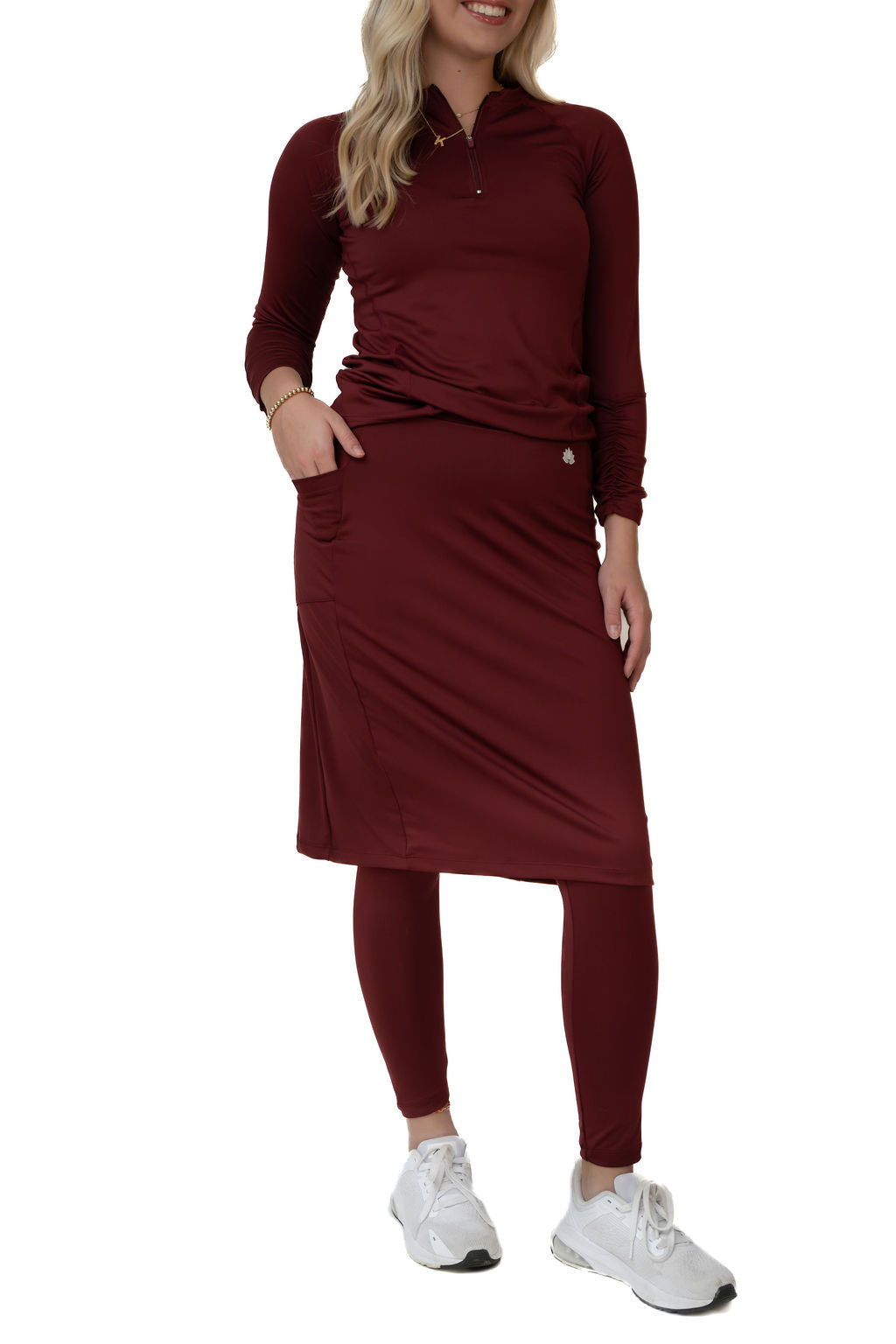 Our best-selling Ankle Fit Snoga is your ultimate go-to for all-day comfort, sleek style, and functional design. Featuring a flattering straight-cut skirt with a large side pocket and attached ankle-length leggings, this Snoga is made for women who want to move freely—while staying modest and pulled together.