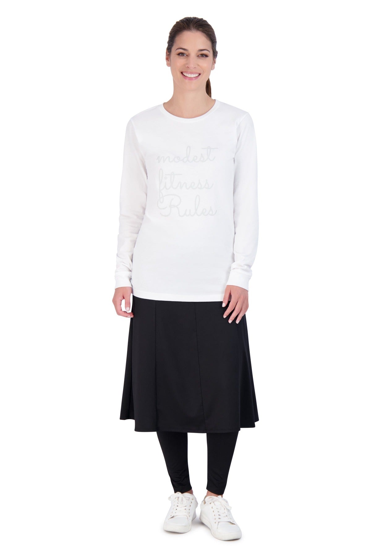 Our Ankle Ballet 26" Snoga is the perfect fit and flair. This midi style was designed for those gals that want a comfortable fit around their waist and a longer length skirt. Ankle length leggings will keep you warm in the cooler months. The fabric is light weight high performance activewear material that is quick drying and extremely long lasting. Its an adorable style with flats or sneakers when you are not exercising and perfect for traveling as it can be worn from day to evening. This style was previously known as the Dance Snoga (updated fit.)