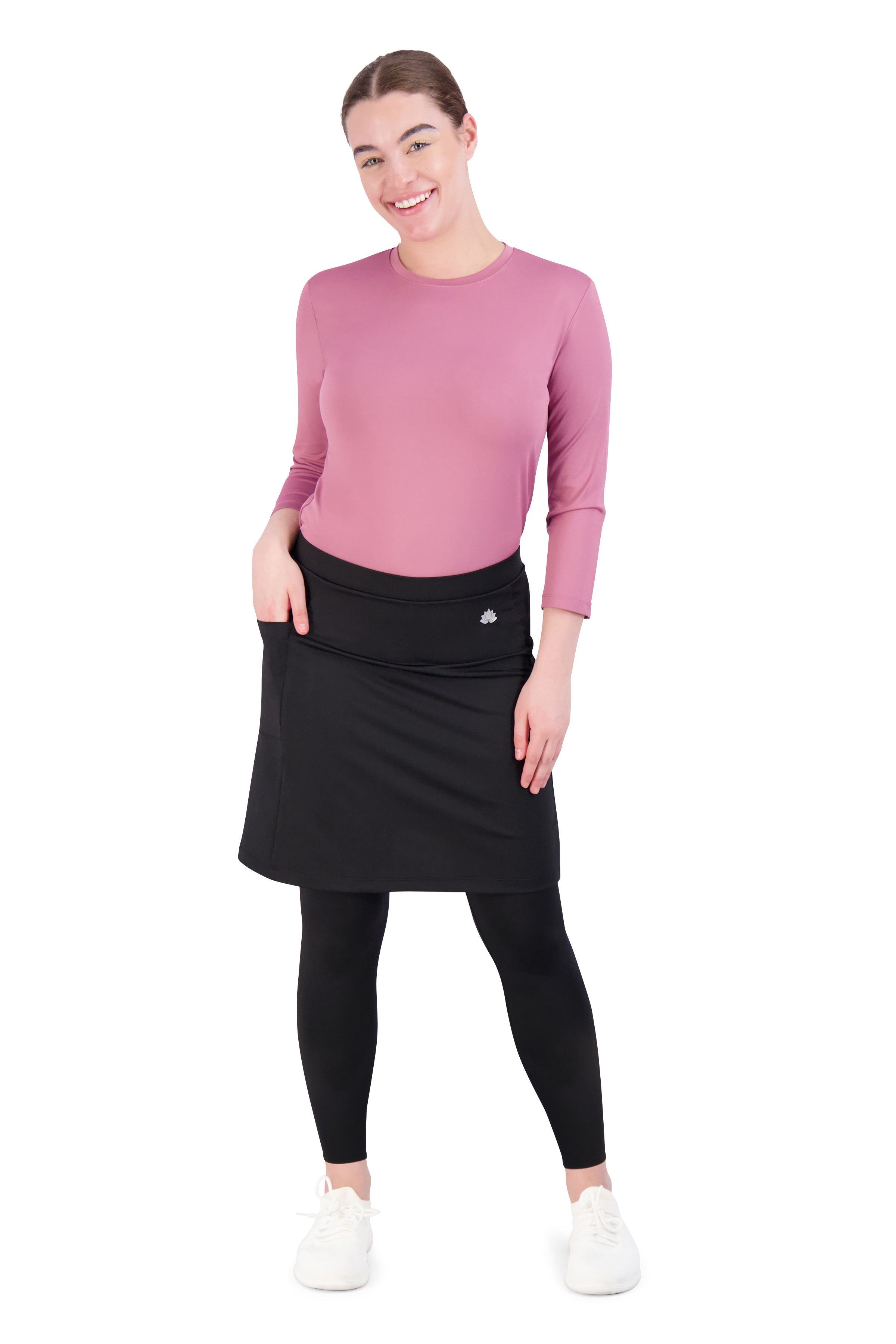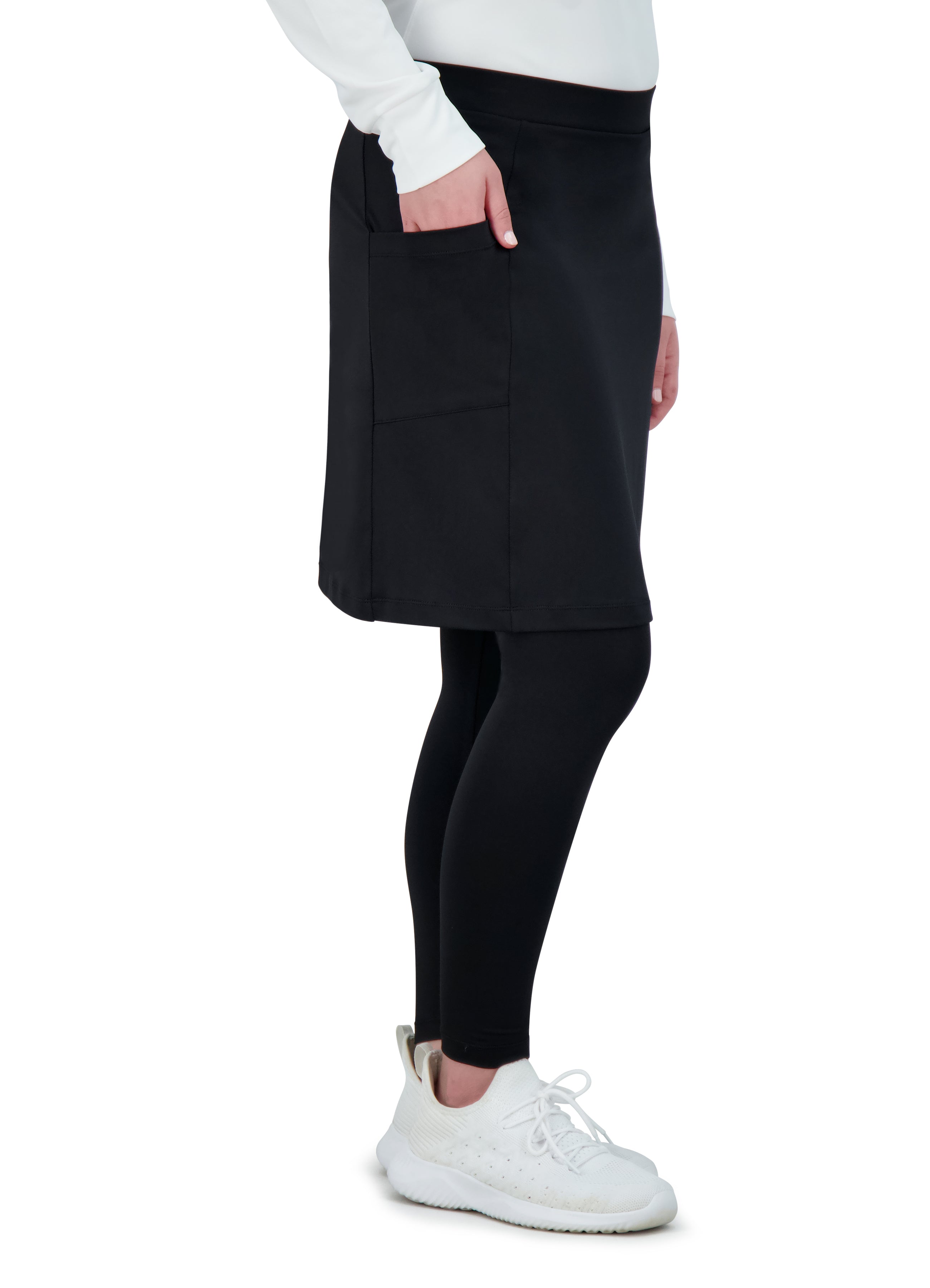 Our new Ankle Fit Snoga 18" is an above the knee skirt that is a pencil cut but still allows for movement. The ankle length attached leggings make for a modest and functional feature. A deep pocket on the skirt fits a phone or a few tennis or golf balls. This design is great for all sports and doubles as weekend hang-out gear! The fabric is chlorine safe so you are set for water activities that may await you. This is the perfect Travel Skirt!