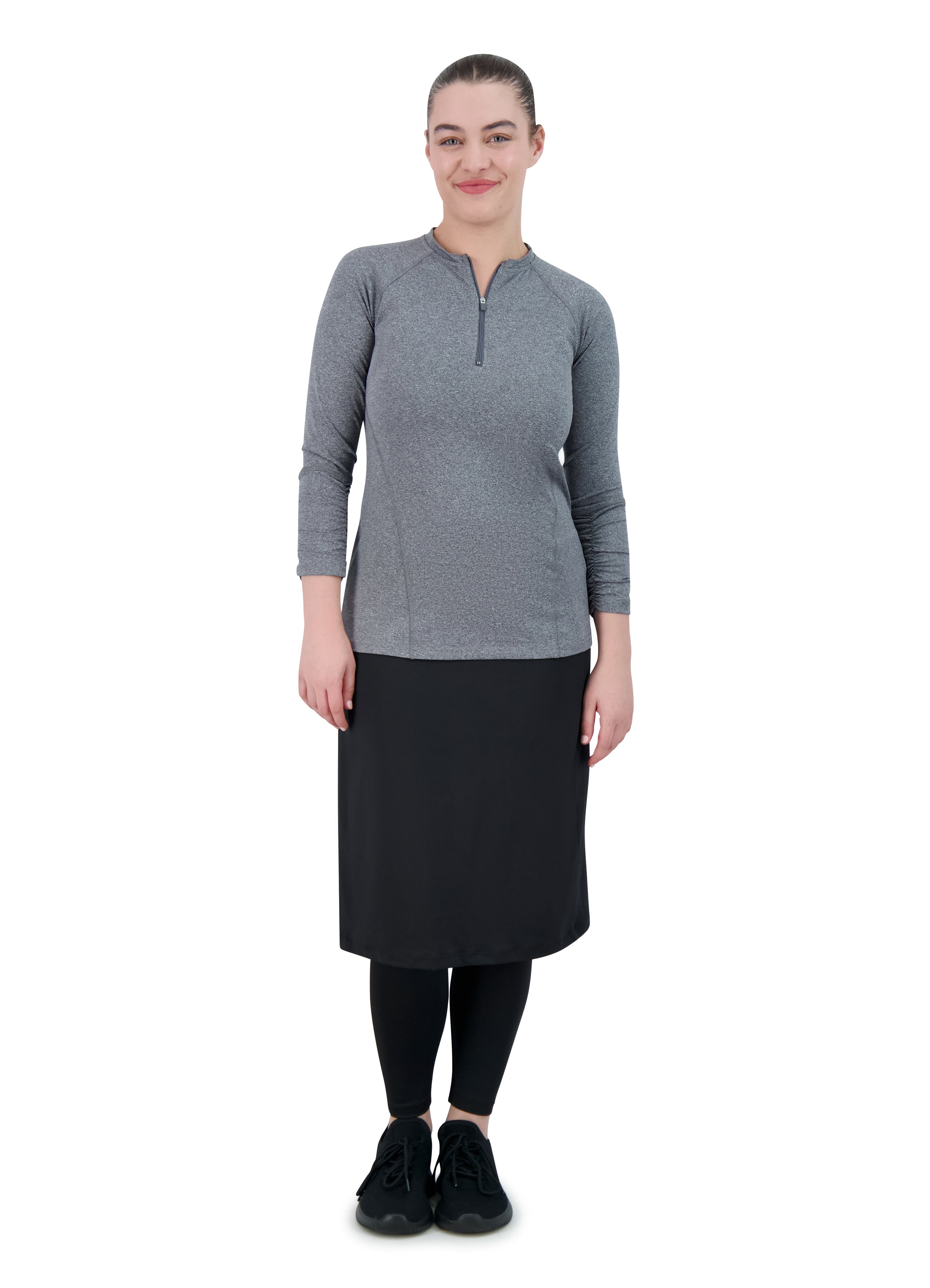 Our Fit Snoga is a knee length skirt that is a straight cut but still allows for movement, The ankle length attached leggings make for a modest and functional feature. A deep pocket on the skirt fits a phone or a few tennis or golf balls. This design is great for all sports and doubles as weekend hang-out gear! The fabric is chlorine safe so you are set for water activities that may await you. This is the perfect Travel Skirt!