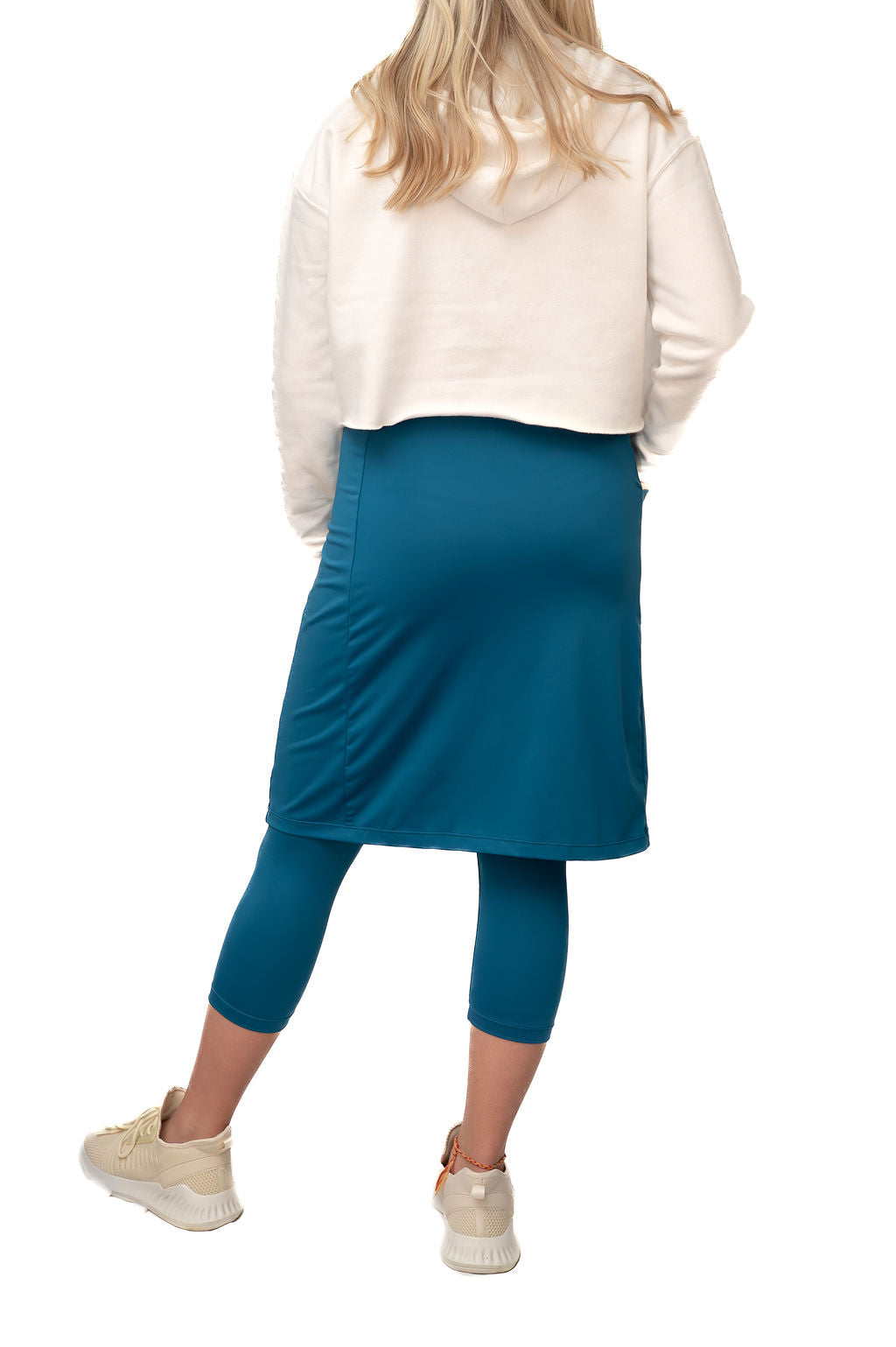 Our Fit Snoga is a knee length skirt that is a pencil cut but still allows for movement, The ¾ attached leggings make for a modest and functional feature. A deep pocket on the skirt fits a phone or a few tennis or golf balls. This design is great for all sports and doubles as weekend hang-out gear! The fabric is chlorine safe so you are set for water activities that may await you. This is the perfect Travel Skirt!