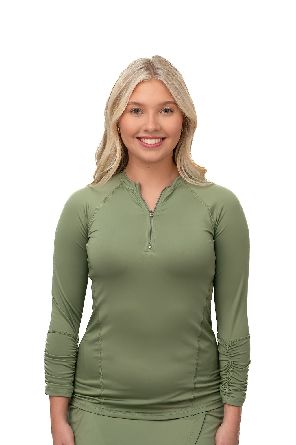 The Snoga Active Top is a modest activewear essential designed for comfort, coverage, and performance. Featuring 3/4 length sleeves and a zip-neck crew neckline, this lightweight active top allows you to adjust the fit and coverage to your preference. Made from breathable, moisture-friendly fabric, it keeps you cool and comfortable during workouts, walks, or everyday wear.