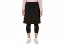 This design was our original concept, and still is our most popular! The skirt is straight but not huggy. It allows for movement when working out or playing sports and the mesh trim detail make a modest design look hip and fashionable. The attached ¾ leggings hold you in but are extremely comfortable. The fabric is a light weight activewear material that is light enough to not overheat when you exercise yet it doesn't stick to you. As well, our mesh trimmed basic flatters all body types. All our materials are chlorine safe so they will serve you land to sea!