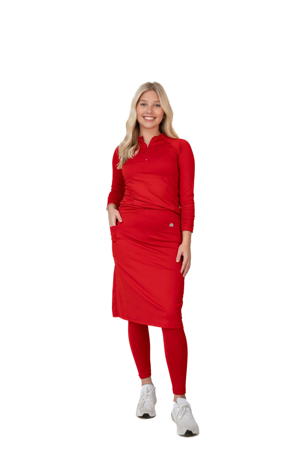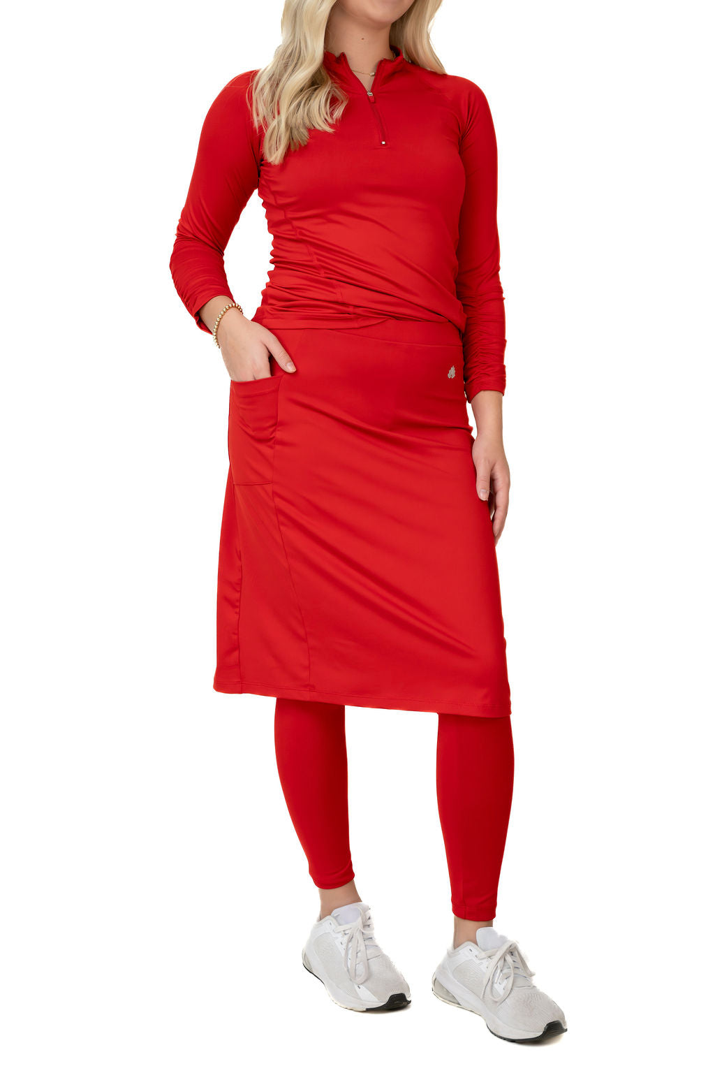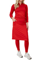 Our Fit Snoga is a knee length skirt that is a straight cut but still allows for movement, The ankle length attached leggings make for a modest and functional feature. A deep pocket on the skirt fits a phone or a few tennis or golf balls. This design is great for all sports and doubles as weekend hang-out gear! The fabric is chlorine safe so you are set for water activities that may await you. This is the perfect Travel Skirt!